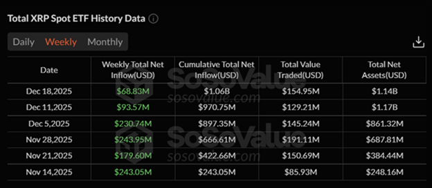 Institutional access is now firmly established. Regulated spot XRP ETFs have accumulated more than $1.14 billion in assets—nearly 1% of circulating supply—with consistent weekly inflows. This isn’t speculative hype; it’s portfolio allocation.